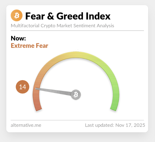 0 - 24 극단적 공포 (Extreme Fear) 투자자들이 극도로 걱정하는 상태, 매수 기회일 수 있음